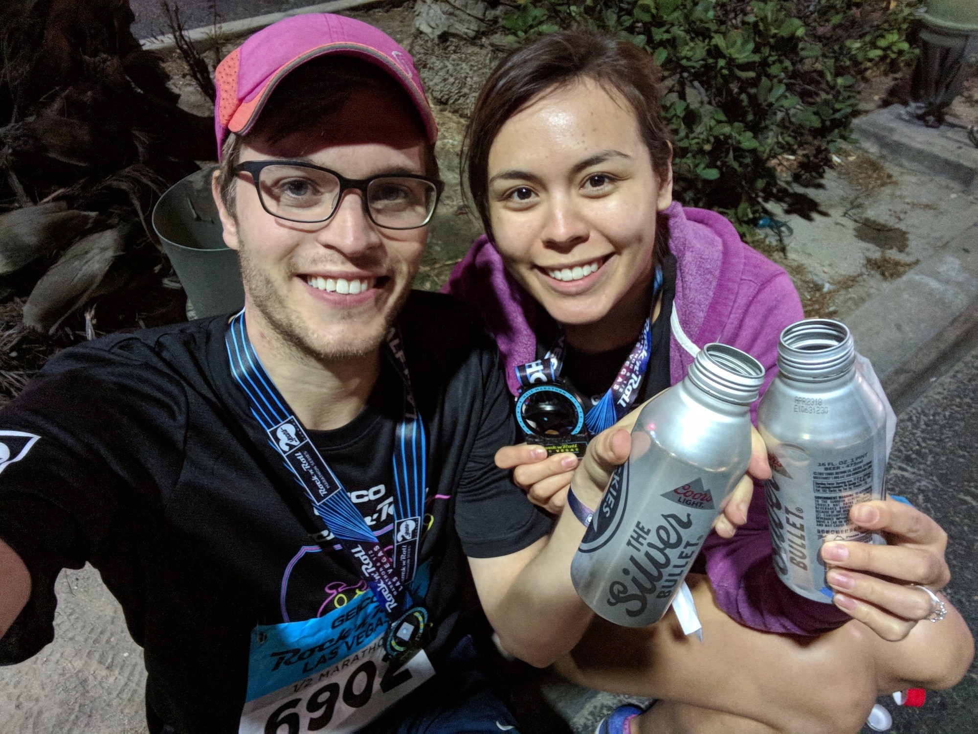 - I wouldn’t do it again. There were way too many people (20,000 participants) and it took forever to get anywhere. Due to the lack of pedestrian facilities in Las Vegas and the fact that everyone was trying to get to the same place, it took us 45 minutes of walking to reach the gear check, which was only about a mile away. Luckily, we left our AirBnB an hour before the race started. Even though the race officially started at 4:30pm, we didn’t get to start running until 5:30pm, so we were just waiting impatiently in a packed crowd of people. Plus, the faster corrals (which we had originally signed up for) closed at 4:10pm so we couldn’t get in! Some parts of the race were not well lit, and I was worried I was going to trip and fall. Worst of all the crowd of people didn’t really thin out that much during the race, so we were constantly dodging or weaving around people going at slower paces. Wait, just kidding. The worst part was at the finish line. We had to walk for a mile before we could get to the gear check at the end and rest. The finish line was at the Mirage and we exited the race area at the Bellagio – it was crazy. However the medals were pretty cool, and the race was completely flat.