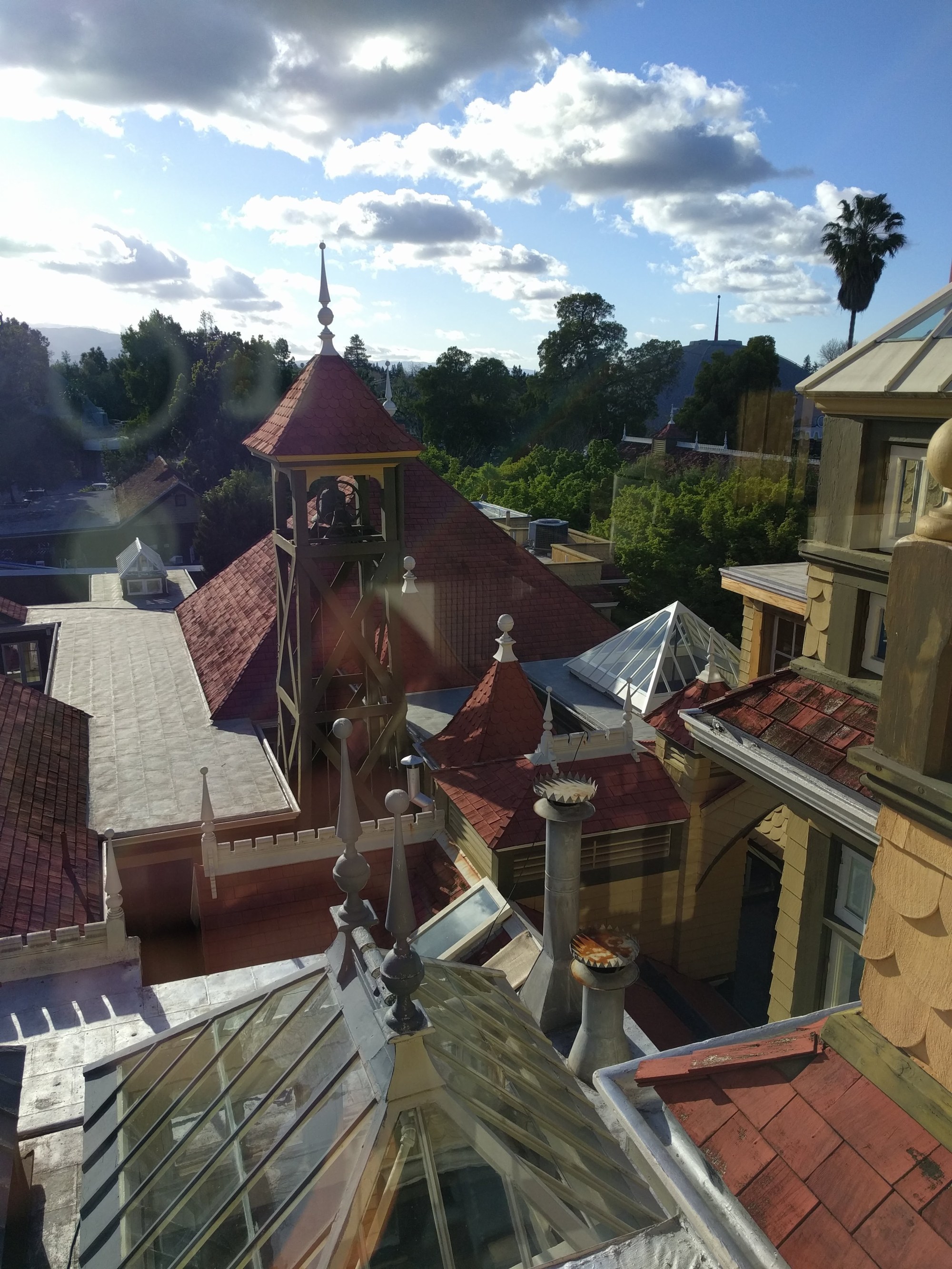 After our filling meal, we headed to the Winchester Mystery House in San Jose. I was very excited for this experience. I had read about Sarah Winchester and the Winchester mansion many years ago. Sarah Winchester was the widow of the 2nd President of the Winchester Company, and as such was very rich. According to legend, she believed that the spirits of those killed with Winchester rifles wanted to haunt her, and the only way to stop them was to continuously build her mansion in ways to confuse them. The result is a sprawling, opulent, 160 room mansion with staircases to nowhere, doors and cabinets that open into walls, doors that lead to a 3-story drop, floors that are offset from each other by only a few feet, and more. I found the experience absolutely fascinating.