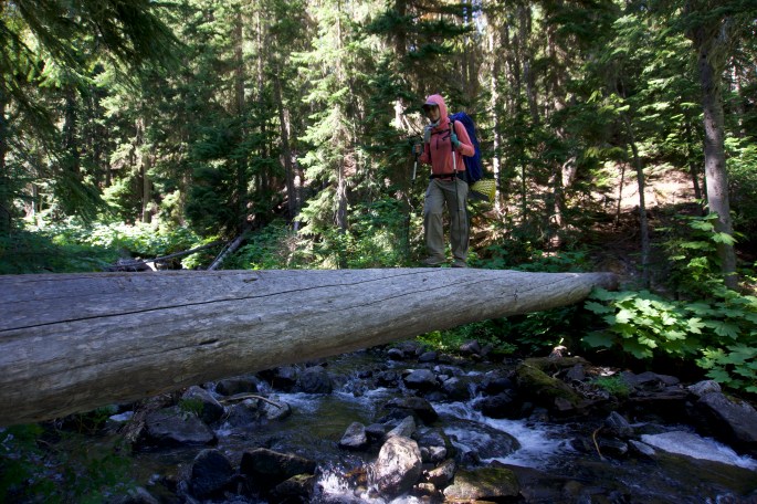 In order to make it by 1:10pm, we woke up at 3:30am (which was ridiculous) and started hiking at 4:20am. This was my first night hiking experience. I personally don’t get why people like it, but to each their own. It’s sort of creepy, easier to injure yourself, and you can’t see the scenery. I would definitely do it again in order to make miles though. Luckily, there wasn’t too much scenery for us to miss during this portion of the hike. Some scenery of note: a giant toad, a river bathed in pale pink early morning light, a “one-at-a-time” suspension bridge.