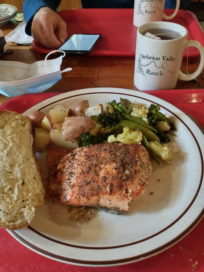 Thankfully, there was a room available at the Stehekin Valley Ranch. I was worried that the hotel would be completely booked due to local COVID travel, but we lucked out. We paid a large sum of money for one night in a glorified wagon, but we got our money’s worth. All meals and transportation were included, and we had a private bathroom. We ate so, so much. Cliff, the owner of Stehekin Valley Ranch, was so casual about everything. He said, “I don’t know how to work the computer system, so you can just pay in the morning when Beth is here. Go right inside your room, there are no locks and it’s ready.” I had never been in a hotel like this before!