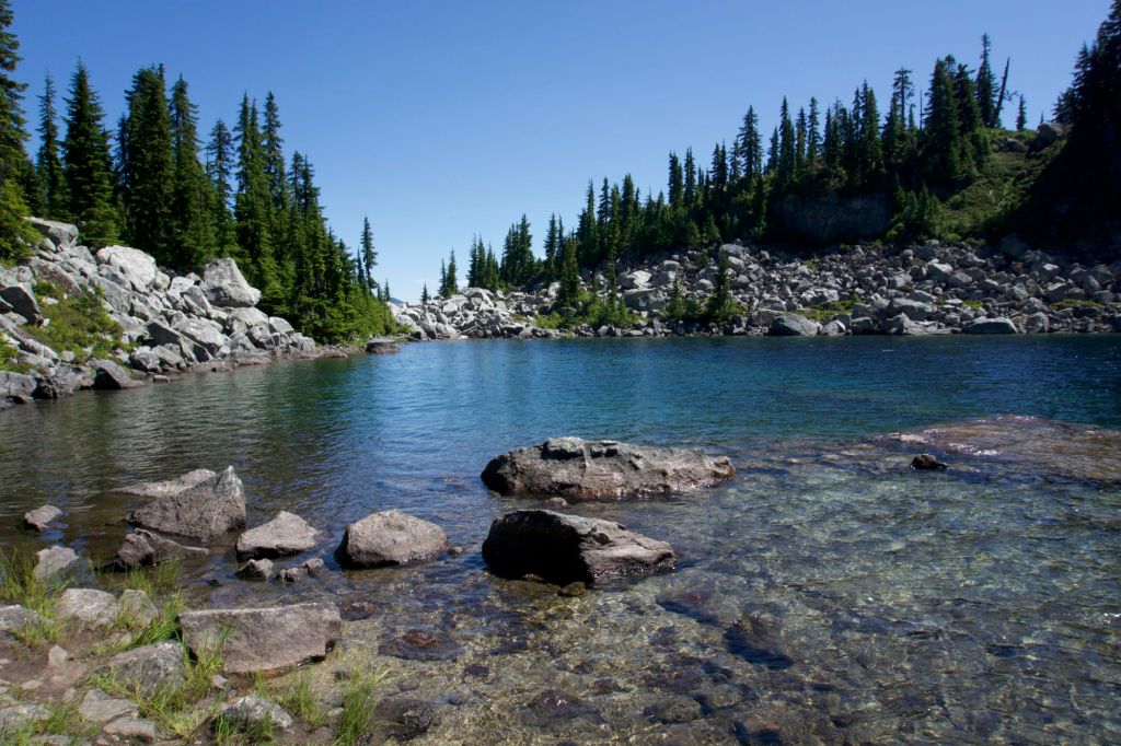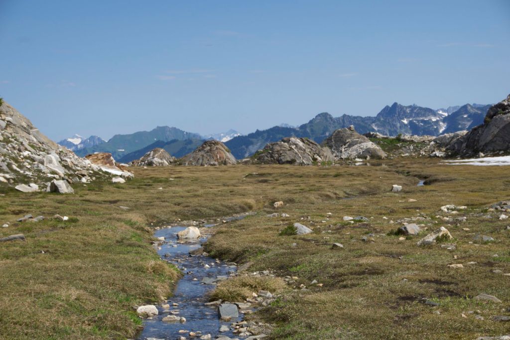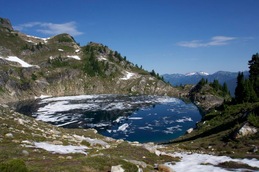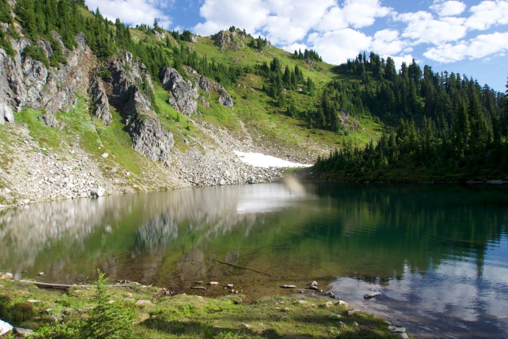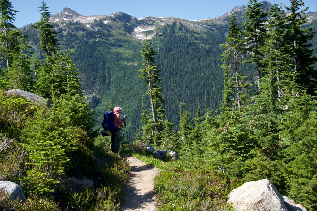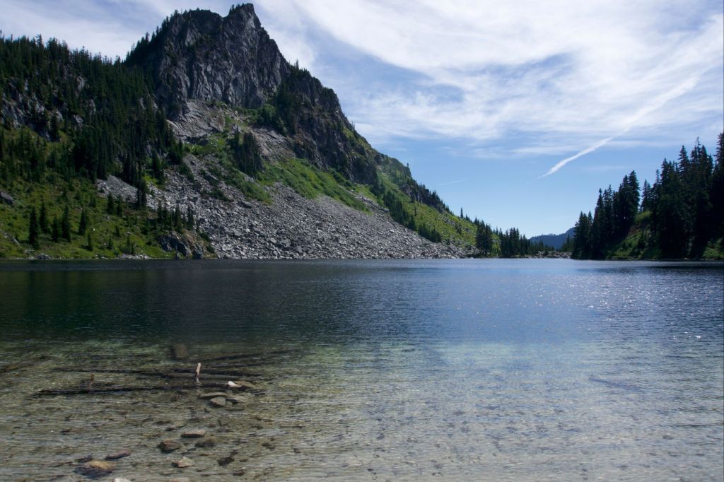 We shared a log at Janus Lake (hopelessly buggy) with M., an older gentleman doing the Washington PCT in sections.