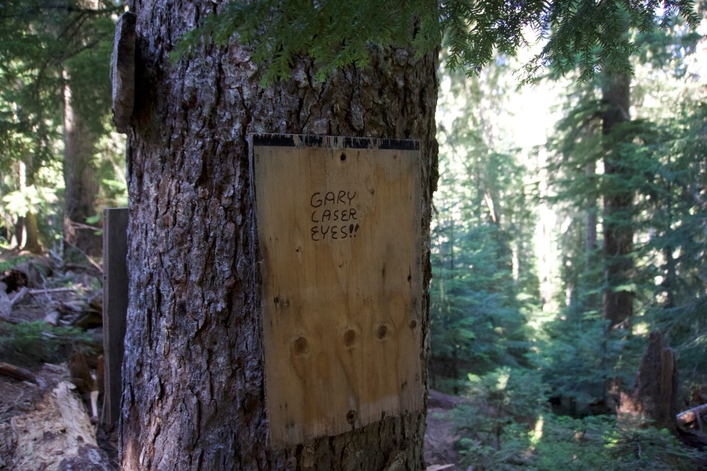 Before lunch we got a little bored. We found a few trail signs that contained the inscription “Gary danger eyes!” This, of course, led us to make up a song.