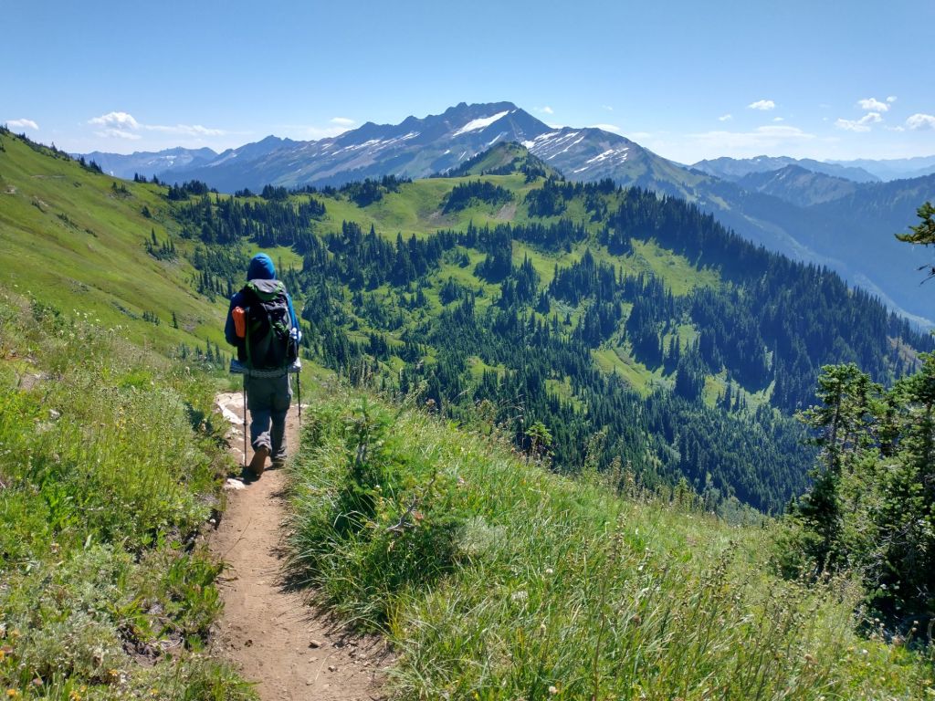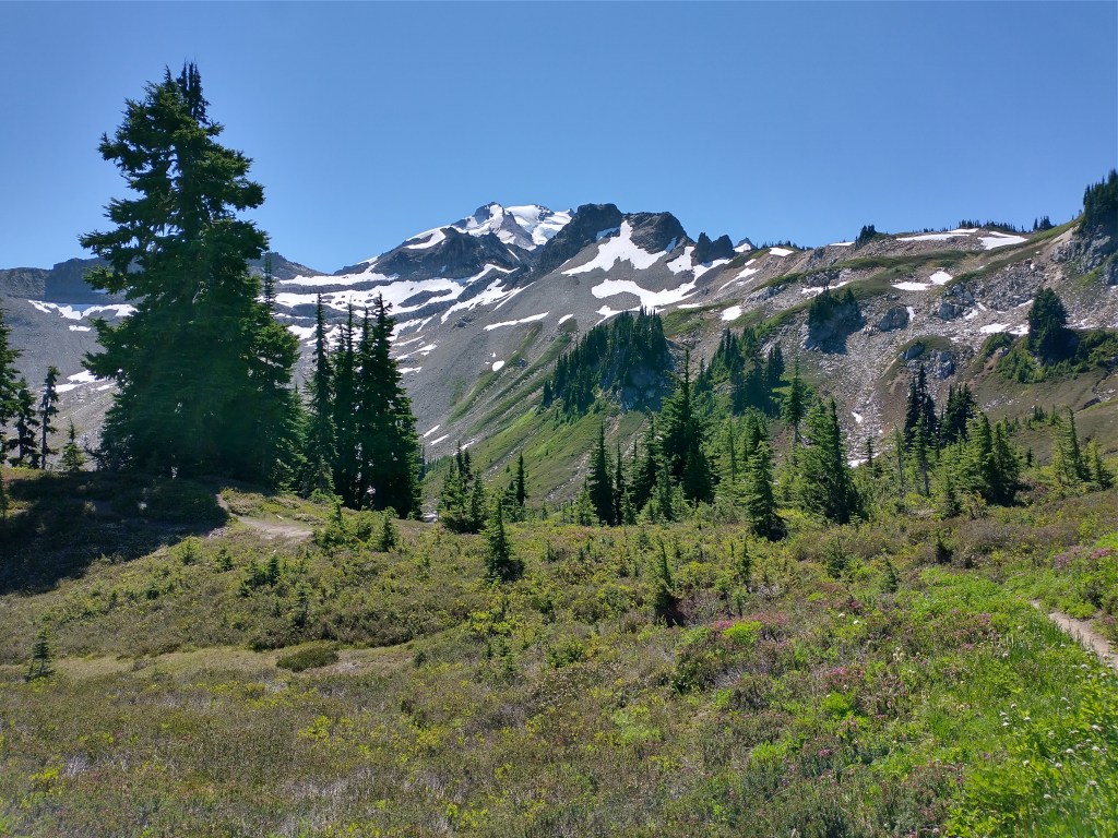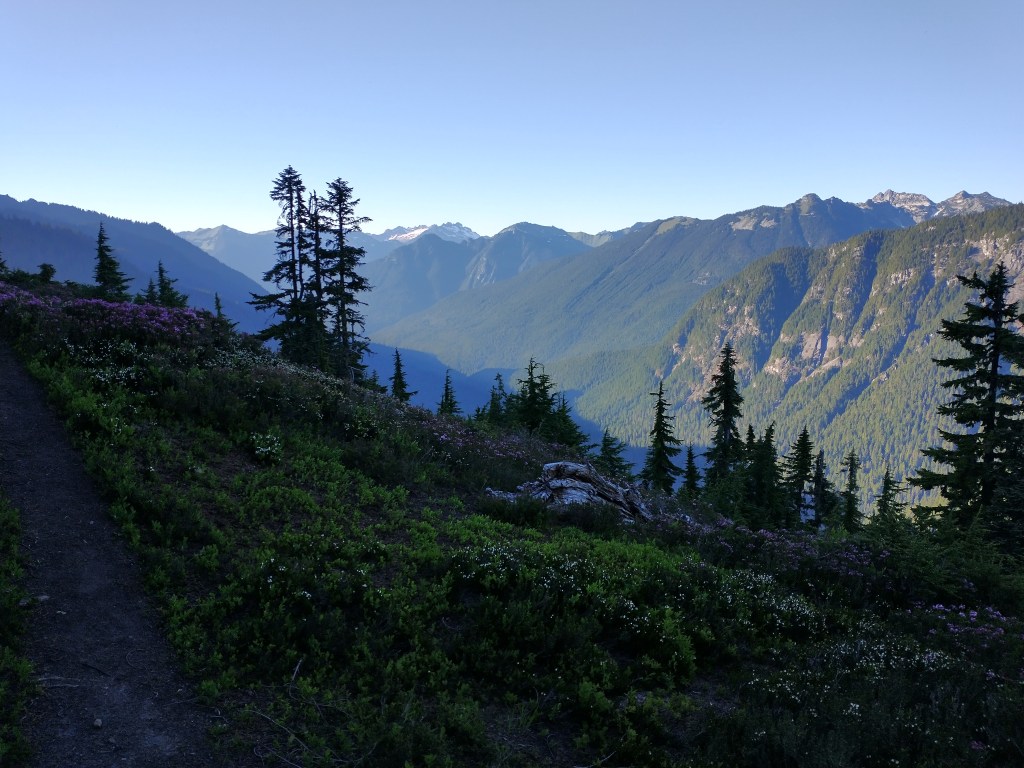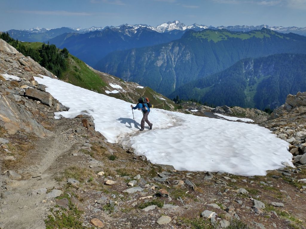 Lake Valhalla was quite nice. It was really pleasant and great for a dip. We hung out at the lake for some time since A. couldn’t pick us up until 6pm. Then we leisurely strolled to Stevens Pass from the lake. The PCT was quite pleasant and like a well-traveled road at this point, a far cry from the seemingly unmaintained trail we had encountered through most of Section K. Upon arriving to Stevens Pass, my burger fantasies were sadly not realized, but I suppose there’s always next time. We hung out outside of the lodge while waiting and charged our devices. While there we met a recent college grad from Mercer Island who was doing the Washington section NOBO before starting work. She warned us that the next section we would encounter was not that scenic. I suppose that although Section K had tested our physical and mental capacities in myriad ways, the views were absolutely incredible. Maybe even worth the pain!